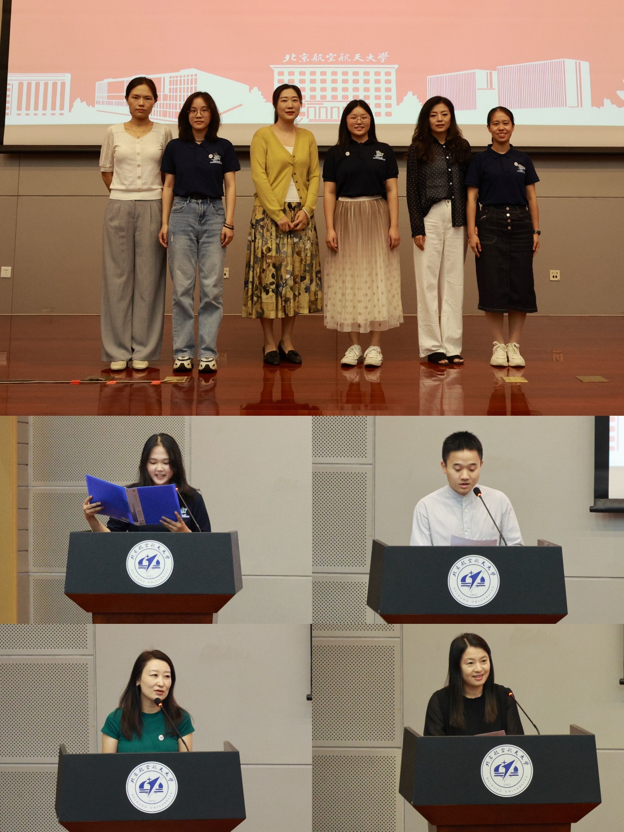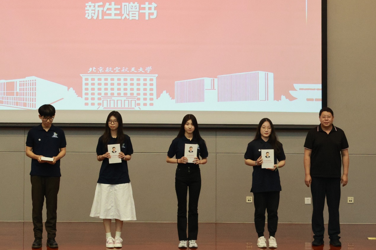 院长助理徐涛、邬丽、王悦为新生佩戴院徽。同时,台下全体新生将院徽戴于胸前。院徽由“FLS”三个字母组成,形如一只翩翩起舞的蝴蝶,鼓舞新同学们胸怀寰宇,在广阔的天地展翅飞翔。新生代表徐子涵(2023级法语专业本科生)、老生代表明志龙(2022级语言学专业硕士生)分别分享了他们的思考与感悟。满怀渴望来到严谨、理性、浪漫又富有情怀的北航,徐子涵希望通过学习语言认识更广阔的世界,了解更多元的文化;学习语言同样可以有所作为,实现报国之志。明志龙回顾过往一年的求学经历,他认为九游·官方网站学院为同学们提供了广阔的平台与丰富的实践机会,同学们应该抓住在北航求学宝贵机遇,提升个人核心素养,以应对科技不断发展的挑战。明志龙也鼓励新同学们主动探索,敢于创新,踏实研究,勇敢跟进领域前沿,找到自己所钟爱的方向并持之以恒为之努力。接下来,九游·官方网站副院长邢春丽以及党委副书记刘威老师分别上台为新生班主任、学业导师,以及新生辅导员、梦拓颁发聘书。