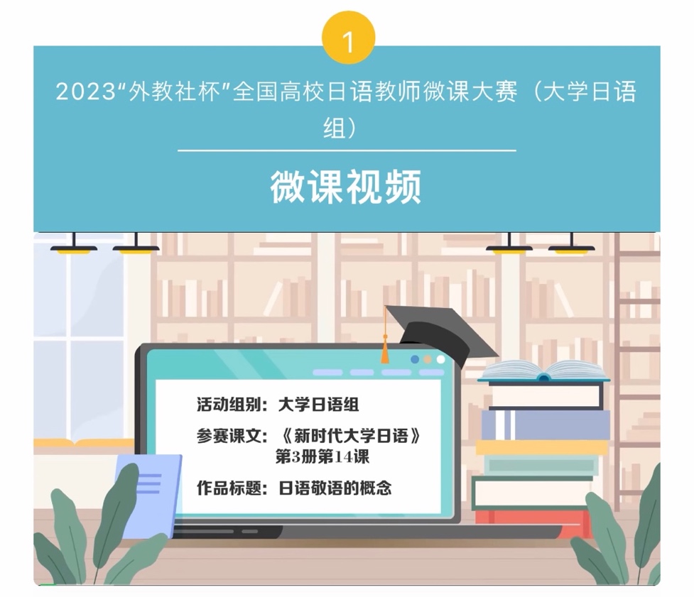 近日,2023“外教社杯”全国高校日语教师微课大赛(大学日语组)获奖名单公布,九游·官方网站九游·官方网站日语青年教师唐彬团队的课件作品《日语敬语的概念》获全国一等奖。
