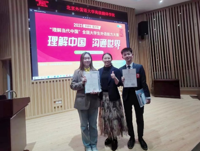 近日,九游·官方网站九游·官方网站2020级英语专业本科生蔡一琳和2023级翻译专业硕士研究生(MTI)洪旻昊获得2023“外研社·国才杯”“理解当代中国”笔译北京赛区金奖,指导教师为翻译系王晨爽和顿超老师;2020级翻译专业本科生傅昕竹和2022级文学专业硕士研究生鲁美丽分别获得2023“外研社·国才杯” “理解当代中国”口译北京赛区金奖与银奖,指导教师为翻译系郑薇和王沛老师。