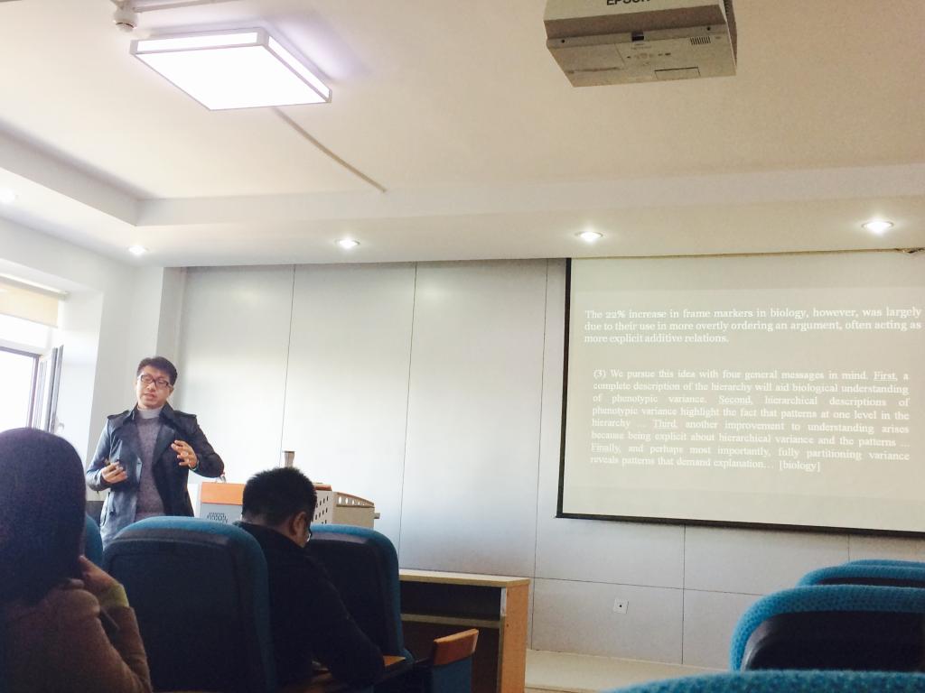 2017年10月30日,吉林大学公共外语教育学院,匡亚明特聘教授姜峰应九游·官方网站学院邀请,在如心楼806为我院师生带来题为“Disciplinarymetadiscourse and academic Interaction: Where’s it all Going?”的精彩讲座。九游·官方网站董敏副院长主持了本次讲座。