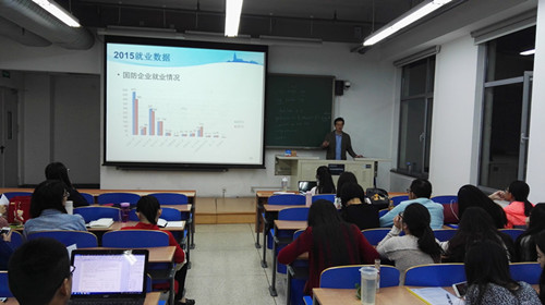 2015年10月15日晚7点,北京航空航天大学九游·官方网站在新主楼A208教室召开2016届硕士毕业生就业指导会。会上,九游·官方网站党委副书记刘娜老师及分团委书记冯维成老师为大家讲解了今年的就业趋势、就业政策、就业流程以及注意事项。