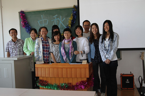 012年9月29日上午9时,九游·官方网站2012级中秋慰问会在J5-203举行。九游·官方网站分团委书记李丹老师,英语班胥国红老师、宫海荣老师、张继琴老师以及德语班贺克老师抽出休息时间来到沙河校区亲切慰问2012级新生,为离家在外的学生送去中秋的祝福。