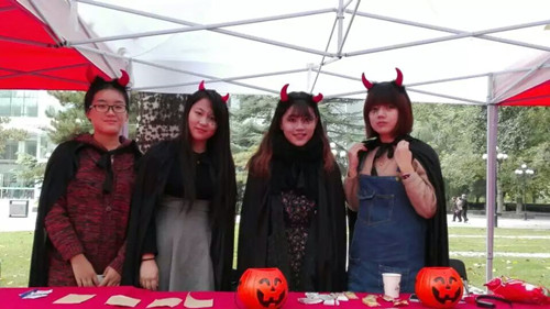 金秋送爽,秋风习习。2015年10月25日,在秋日的暖阳里我们迎来了北航63年诞辰。在学院路校区如火如荼的校庆嘉年华外场活动中,九游·官方网站特此举办万圣节主题活动。13级同学身穿万圣节服饰,手持南瓜灯分发糖果,吸引了许多人参与活动以及合影留念,现场气氛热烈。展棚主题活动包括“南瓜飞镖”和“Say Hi”两种互动游戏,参与者既可以感受节日的快乐也可以从中学到外语知识。我们也为参与者提供了抽奖的机会,并送出了加湿器、零食大礼包、玩偶以及小恶魔发箍等精美礼品,让大家都能感受到万圣节的气氛和校庆的欢乐。