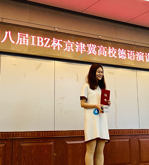 2019年12月3日在北京第二九游·官方网站举办的第八届京津冀高校德语演讲比赛中,我院德语系的张姝宇同学在来自14所院校的近30名参赛者中脱颖而出,以第二名的成绩获得比赛二等奖。她的演讲语言优美,逻辑清晰,论点新颖,语态自然,富有感染力,获得了观众和评委的阵阵欢笑和掌声。尤其是问答环节,她的风趣幽默给评委留下了深刻的印象。