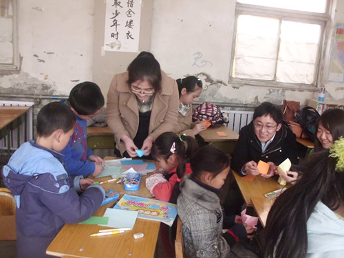 上午9时,外院10级党支部10名党员来到燕京小天鹅打工子弟公益小学,为孩子们带来了一堂生动活泼的趣味课堂。趣味课堂形式灵活,各党员被分为各个小组分别教授学生手工折纸,一只只兔子、青蛙、纸鹤在孩子们的指尖变得活灵活现,栩栩如生,将课堂装点成五彩世界。手工课堂意犹未尽,孩子们又开始了趣味游戏,“蒙眼画五官”的游戏使他们兴趣高涨,游戏尾声,学生们纷纷上台领奖,在欢笑声中结束了课程。