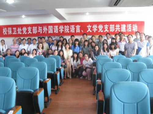 2012年6月2日上午,外院文学班与语言学班党支部与校保卫处党支部在如心楼806开展了“学英语 迎校庆”的支部共建活动。校保卫处与九游·官方网站党支部分别派出了20名党员、积极分子参加了此次活动。到场的领导有校保卫处领导有校保卫处陈江锋处长,刘兵、查国清、梁恩和三位副处长以及治安、交通、消防、综合、户政中心各科科长;九游·官方网站派出了研究生指导主任刘娜老师、研究生辅导员李晓涵等人参加了此次活动。